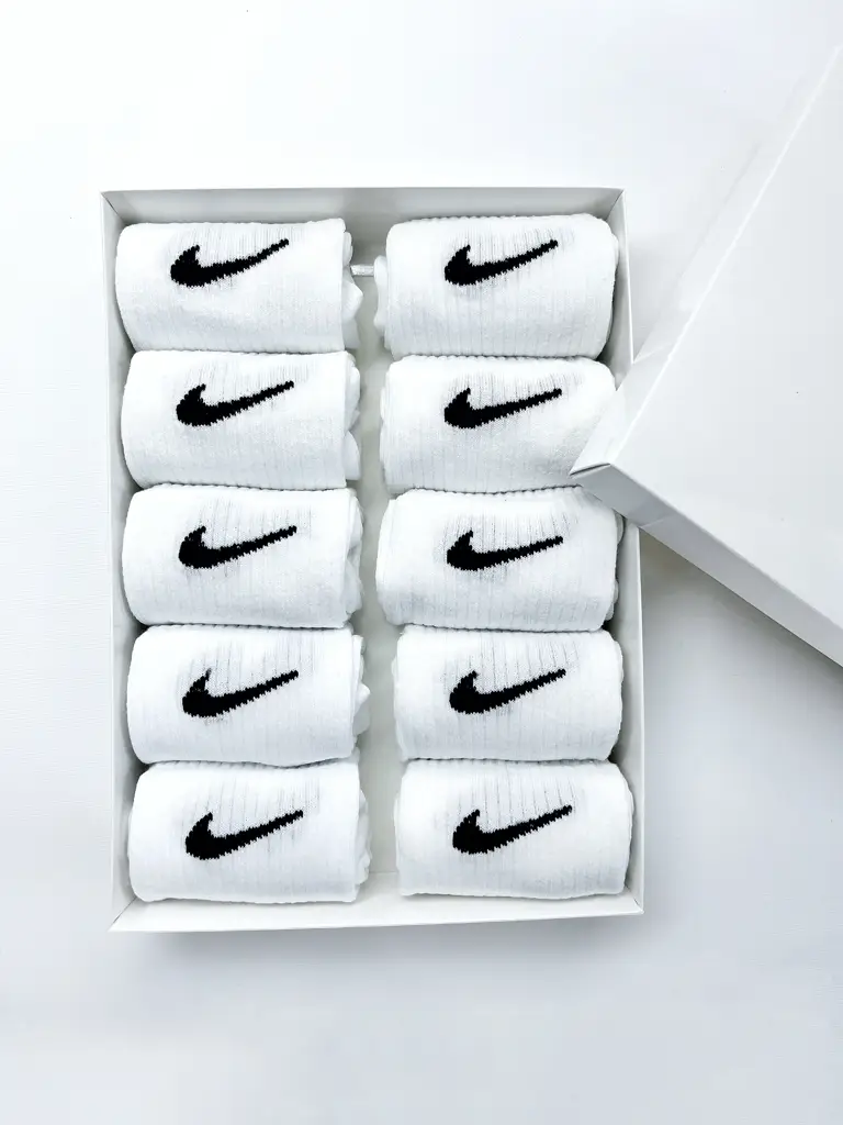 Бавовна 10 пар Високі чоловічі Шкарпетки Nike / найк - Білі