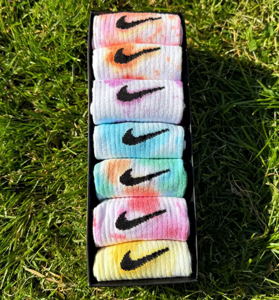 Набір у коробці 5 пар високі жіночі шкарпетки Nike/найк — Tie-Dye кольорові Подарунковий тай дай