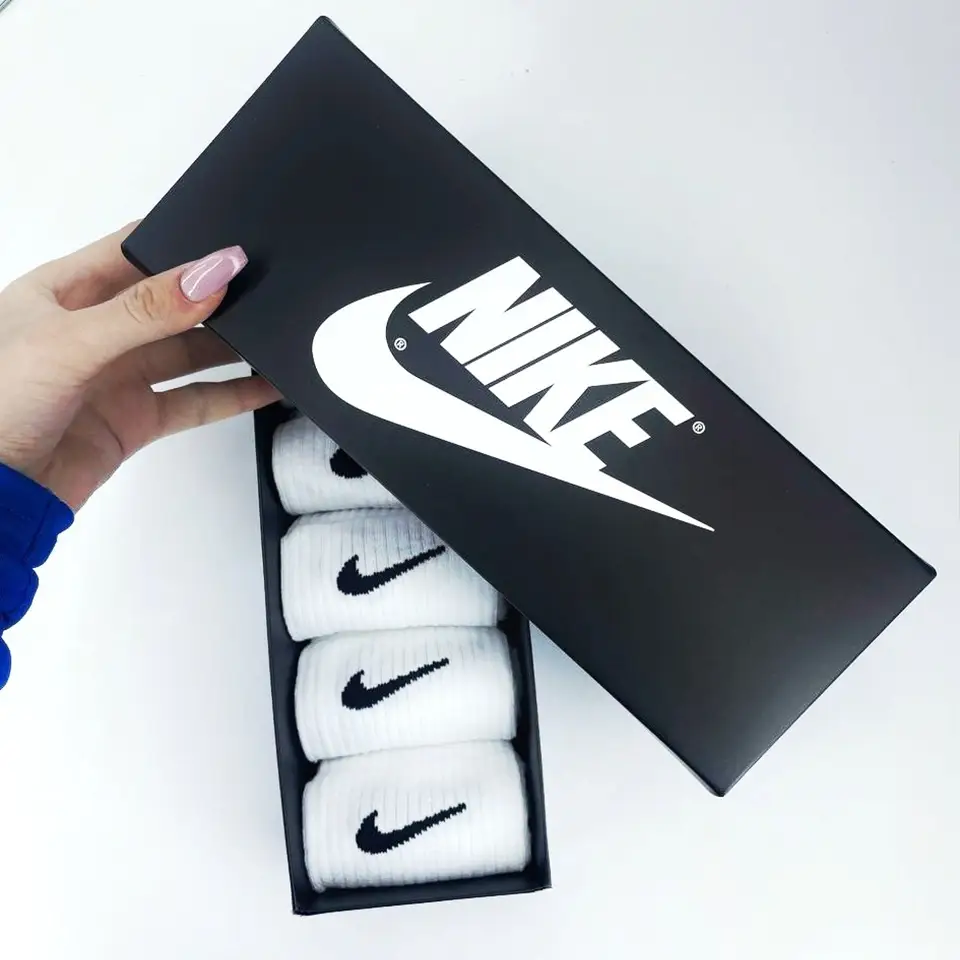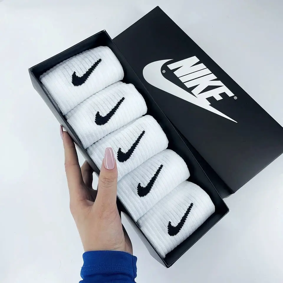 Білі шкарпеткі високої якості Подарунковий набір 5 пар у коробці крутих шкарпеток найк