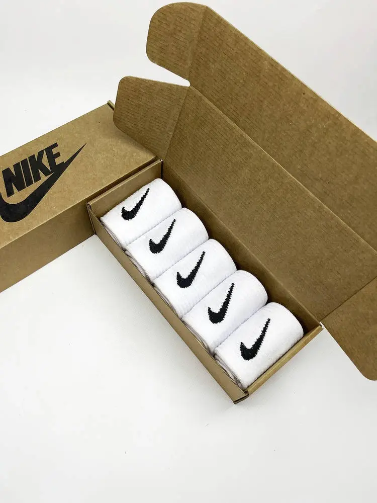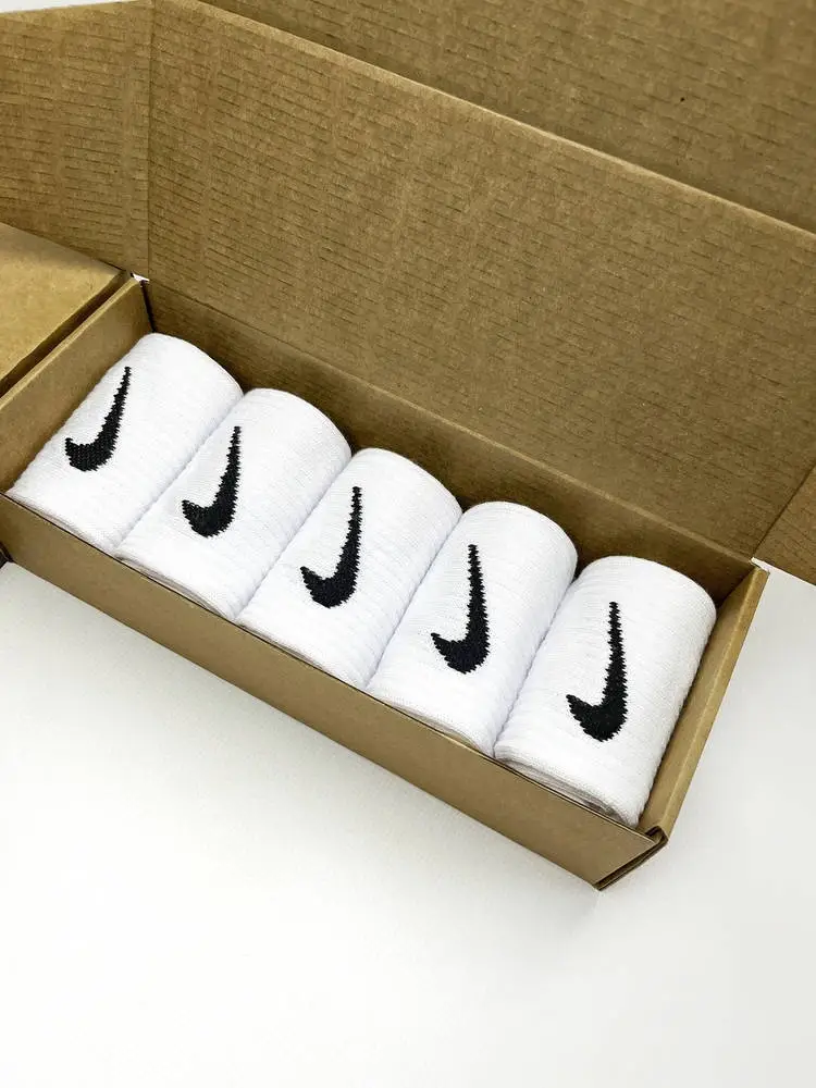 Махрові по сліду шкарпетки Nike білі в боксі крафт 5 пар | Jemis Wear· Socks & Wear.