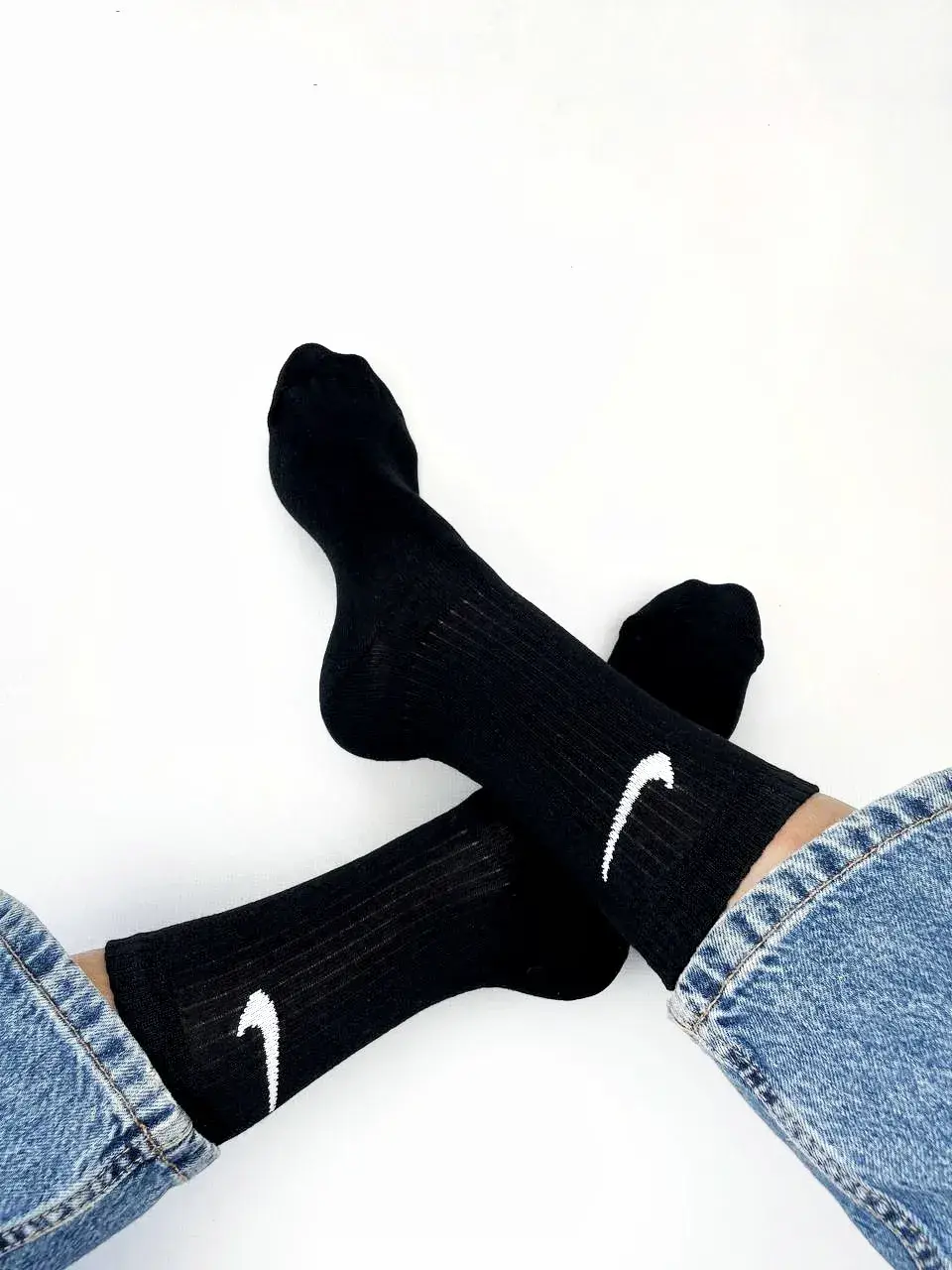 Круті білі високі шкарпетки у стилі незамінної класики. Бавовняна в'язка. Шкарпетки ідеально підходять під абсолютно різний стиль, даючи можливість зробити акцент в одязі.