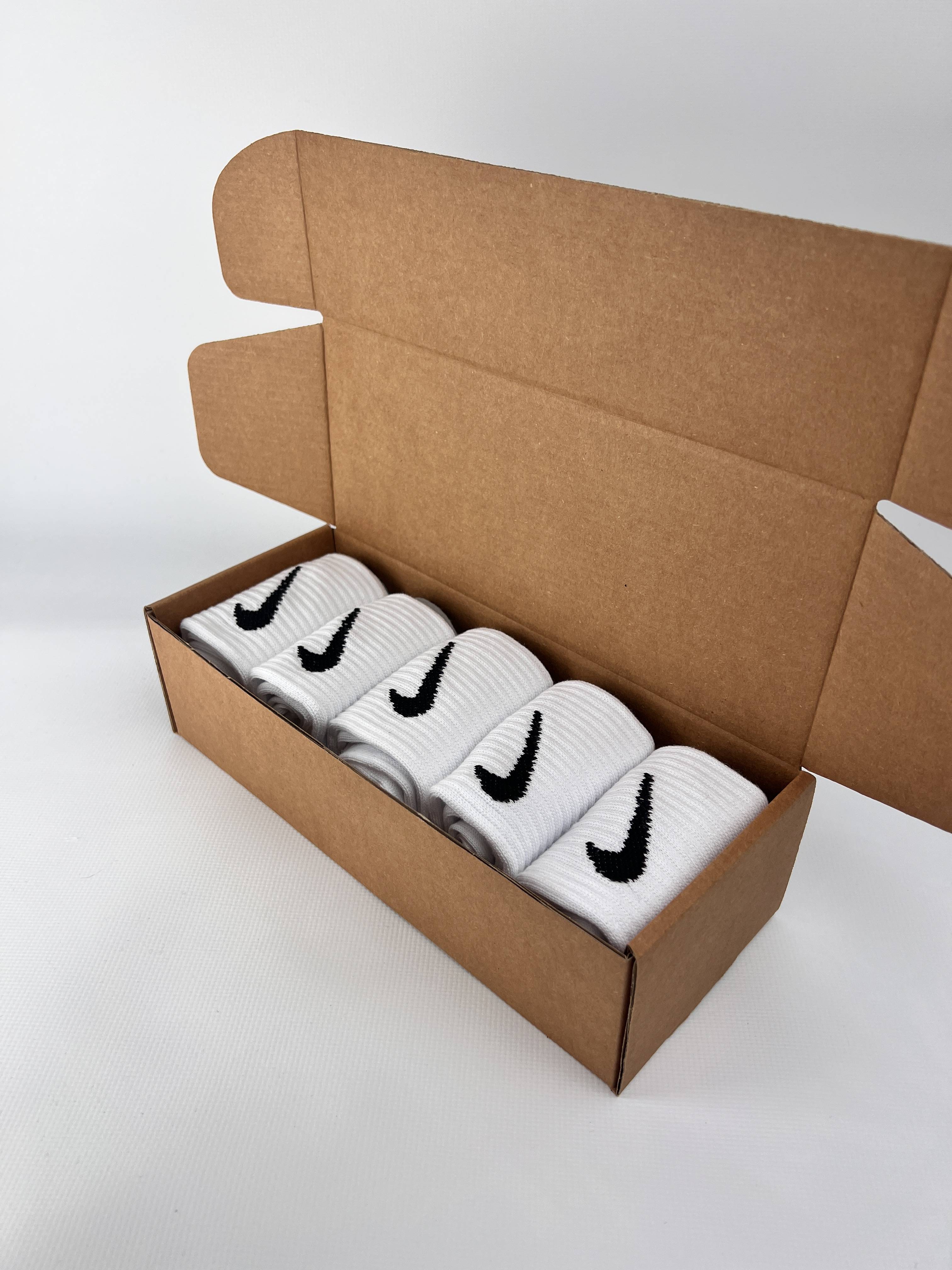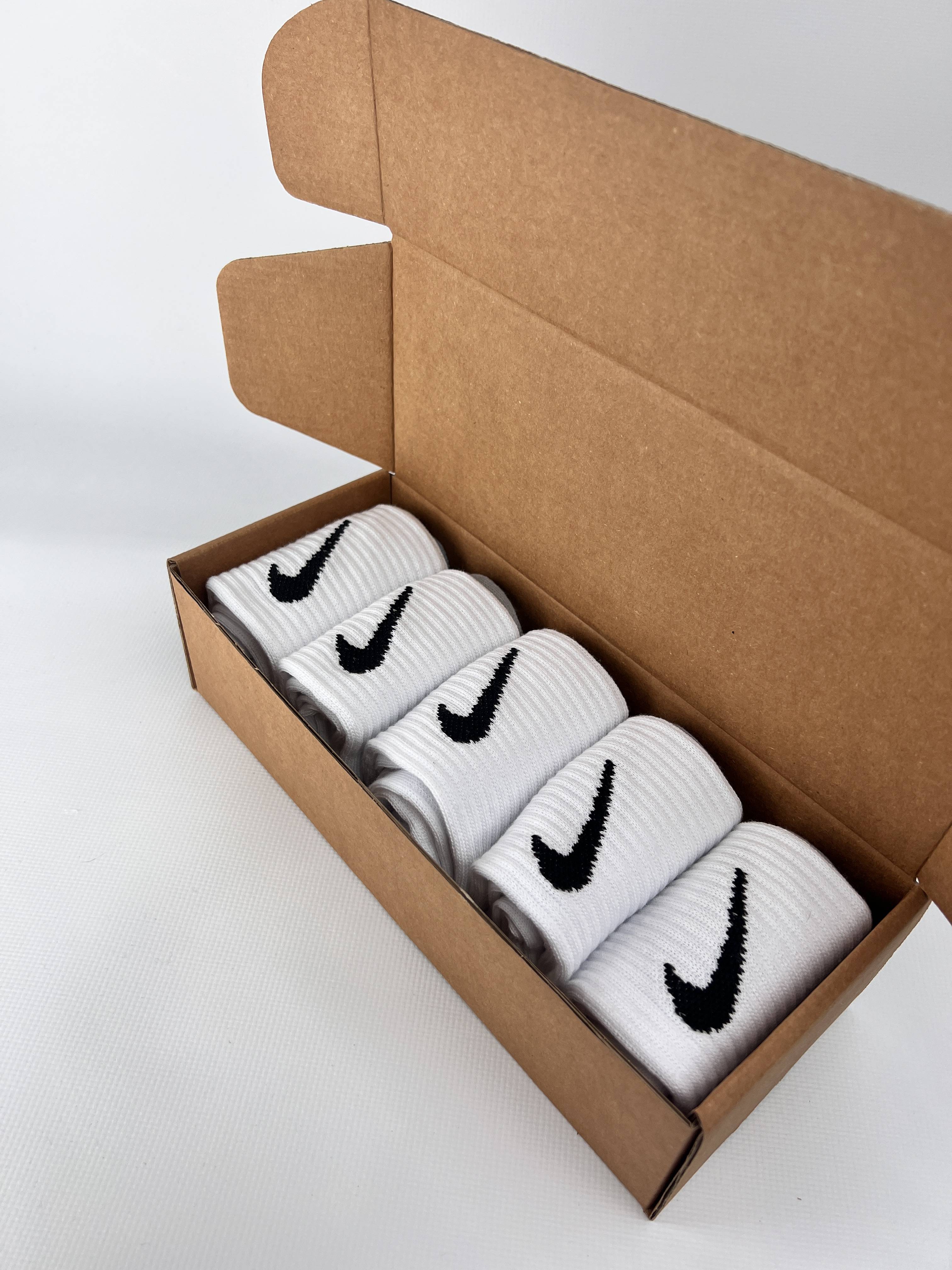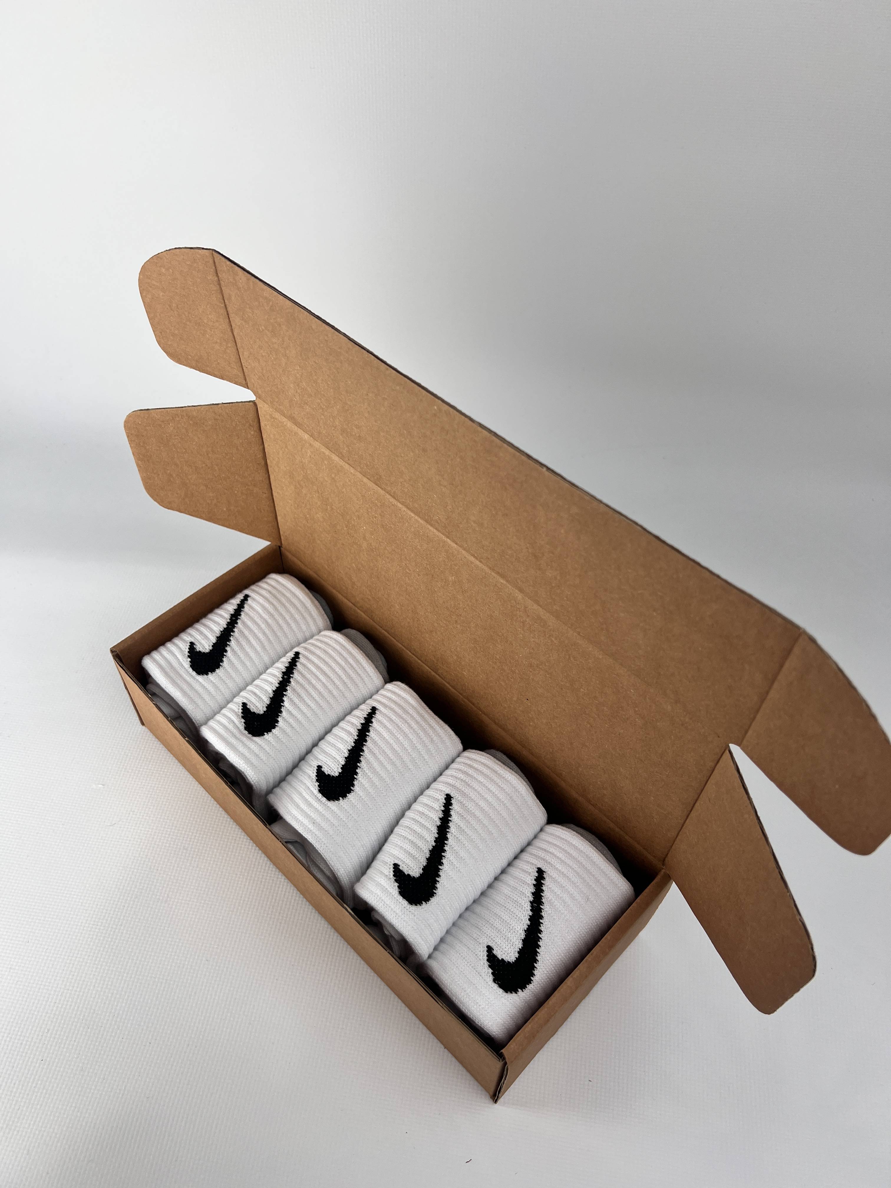 Махрові бавовняні з подвійною резинкою високі в крафт боксі Nike - Білі 5 пар шкарпеток | Jemis W - Socks & Wear.